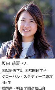 世界から集う留学生と共に英語で学び日本と世界との架け橋を目指す。
