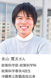 現代社会が直面する複雑な問題に対処するには、既存の学問の壁を越えた視点から、問題を発見し、現状を分析し、政策を提言する力が必要になります。そのため、政策科学部では、複眼的で多角的な視野で学術的な調査、分析、提言のできる人材の育成を目指しています。