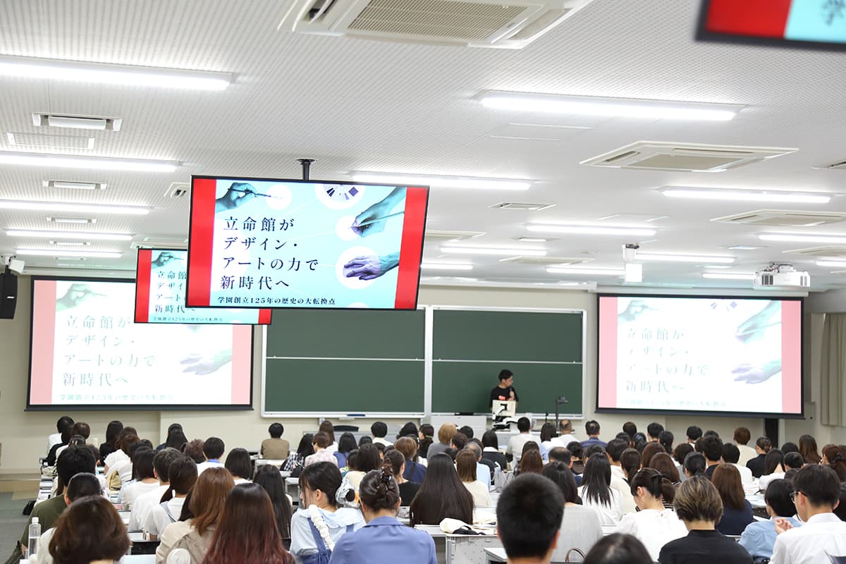 衣笠キャンパス学部企画・模擬授業 各学部の授業を模擬体験したり、施設を見学したり。立命館大学で学ぶ自分の姿が具体的にイメージできるよう、「もしも立命館の学生になったら」を実践学習で体験していただきました。 衣笠キャンパスインデックス
