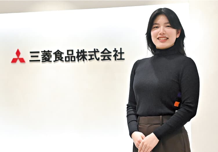 食を通して幸せを届け、持続可能な社会にも貢献したいと考えていた私は、「食のビジネスを通じて持続可能な社会の実現に貢献する」という企業理念に共感し、三菱食品株式会社に就職しました。現在は加工食品の発注を担当しています。さまざまな情報から商品の需要と供給のバランスを考え、お客様に安定的に食を届けることにつながる仕事に、やりがいを感じています。大学では、規格外野菜を使用した商品開発に挑戦しました。農家さんの想いを汲みつつ消費者ニーズも満たせるようチームで話し合いを重ね、価格設定、販路開拓、販売にも携わることで、商品がお客様の手に届くまでにはさまざまな人が関わっていることを実感できました。講義で学んだ知識を活用してアウトプットできる貴重な経験でした。学生時代に得た知識と経験のおかげで、現在でも食に対して常にアンテナを張り、多角的な視野を持つことができていると感じています。将来は、食を通じた地域活性化がビジネスになる仕組みづくりに挑戦したいため、さまざまな経験を積んでいきたいと思っています。
